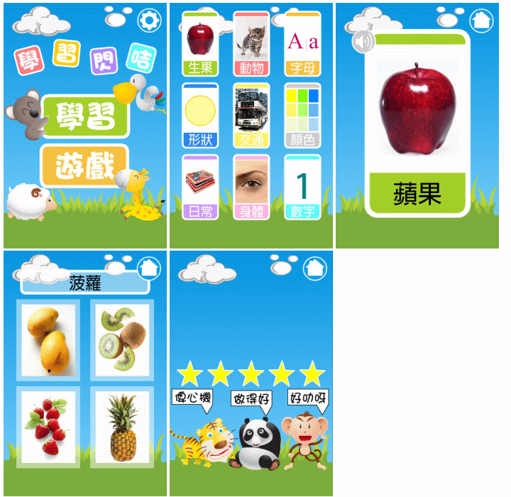 - 遊戲模式提供認聲(語音提示)/認字(靜音)選擇