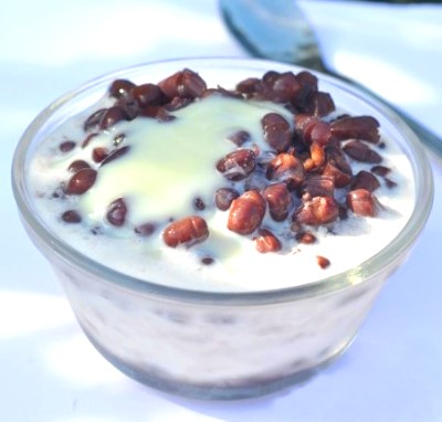 餘下的放入雪櫃冷凍,吃時加入花奶和冰塊,便可成為美味的紅豆冰。
